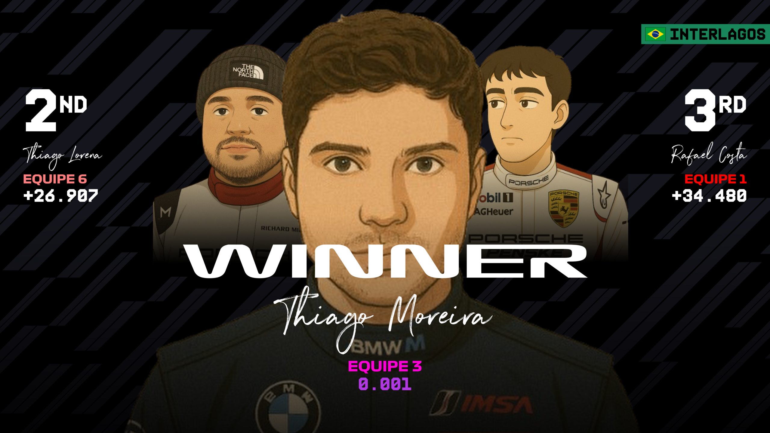 A diferença construída permitiu a Thiago controlar as duas janelas obrigatórias de pit stop — ambas com troca de pneus — sem se envolver em riscos desnecessários, cruzando a linha de chegada como vencedor da etapa inaugural.