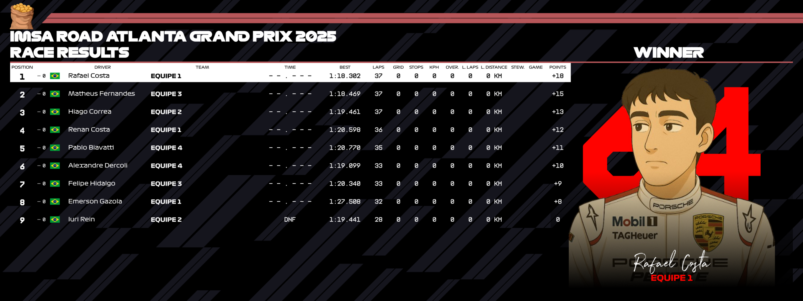 A Petit Le Mans de Road Atlanta foi mais do que uma final. Foi um retrato fiel do que a Potatos representa: respeito, competitividade, emoção e paixão pelo automobilismo virtual.