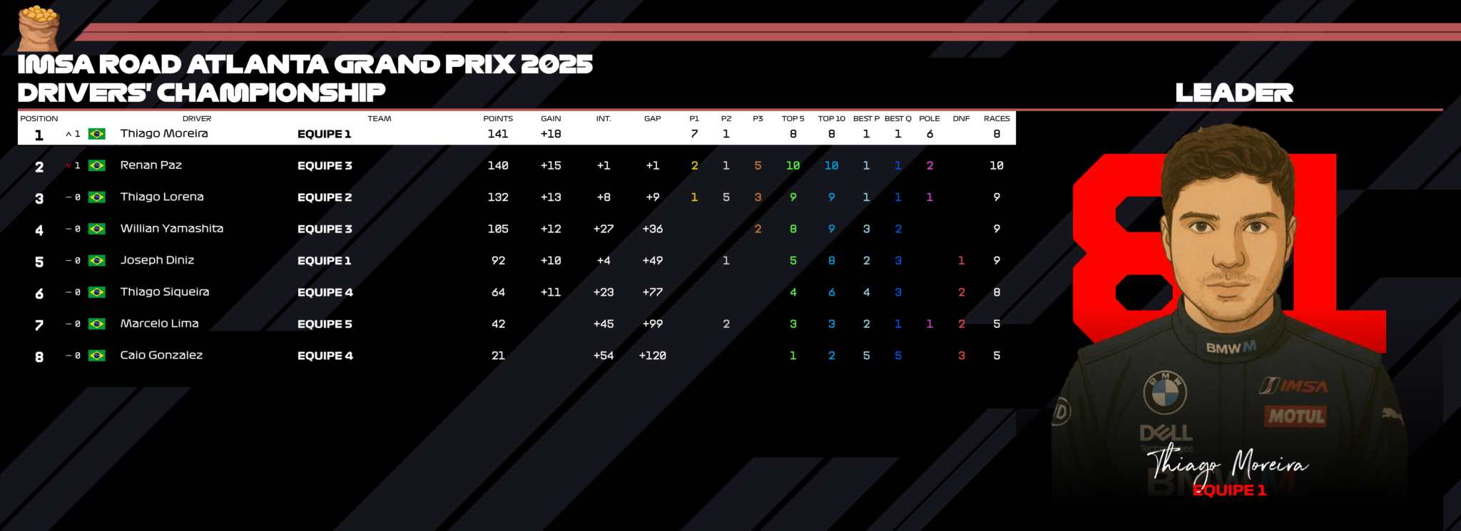 Mesmo assim, Thiago Moreira manteve o carro inteiro, o ritmo sólido e a cabeça fria. Quando a bandeira se aproximou, não restavam dúvidas: era mais um título para um multicampeão que entende o que é vencer quando mais importa.